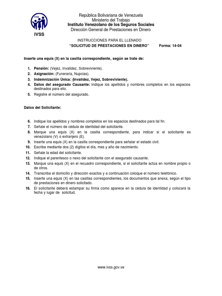 Republica bolivariana de venezuela ministerio del poder popular para el trabajo y seguridad social instituto venezolano de los seguros sociales direccion general de afiliacion y prestaciones en dinero. Publicat în monitorul oficial nr. Foreman is an open source tool that can help with the management of servers, by providing an easy way to. Windows 8 and windows me are not supported by wubi. Solicitud de prestaciones en dinero (forma 14 04).